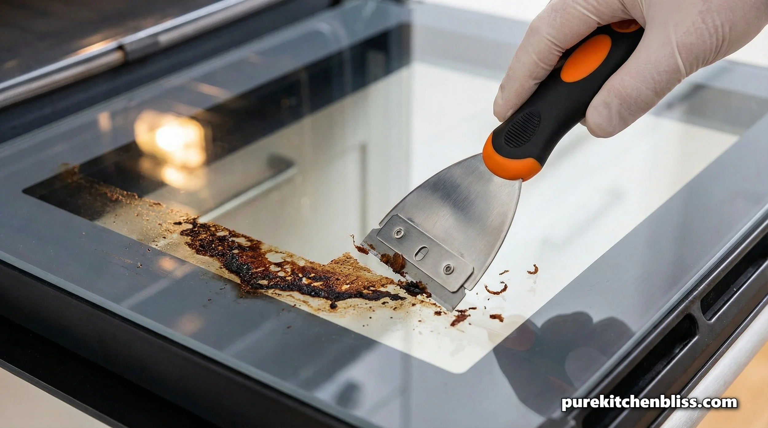 The Razor Secret: For truly burnt-on "rings" on the glass, use a brand-new glass scraper at a 45-degree angle. This is the only way to remove carbonized sugar without scratching the tempered glass.