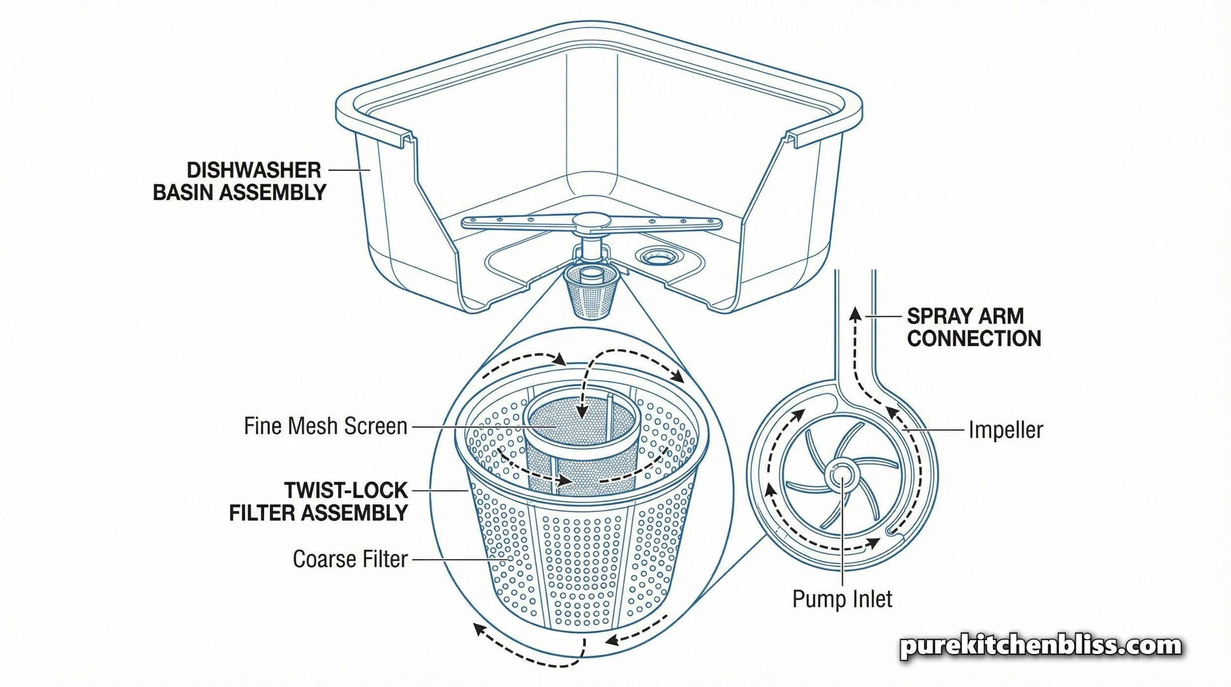 The Debris Trap: If the filter becomes saturated, the dishwasher recirculates dirty water. This "dirty loop" not only leaves residue on your dishware but also increases the abrasive load on the pump.