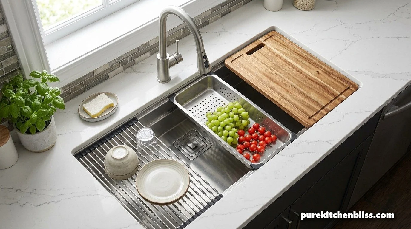 The defining characteristic of a workstation sink is the "Ledge." Traditional sinks have smooth vertical walls; a workstation sink features one, two, or even three horizontal tracks built directly into the basin walls.